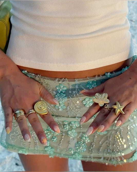 MINI SKIRT WITH SEQUINS AND BEADED FLOWERS